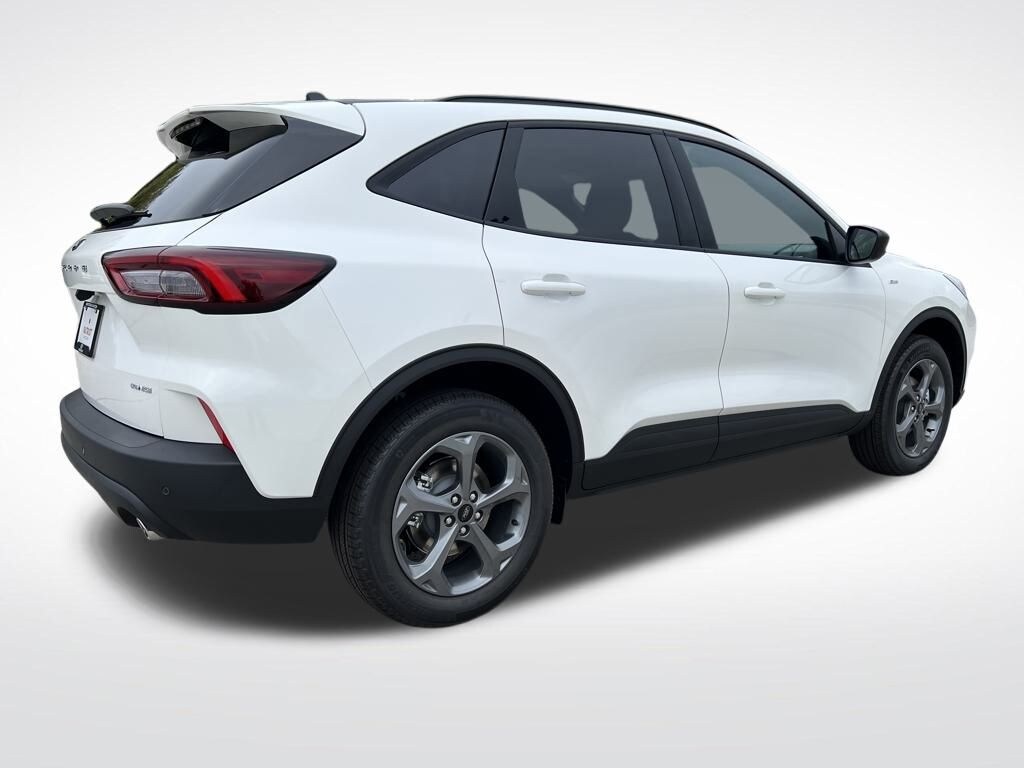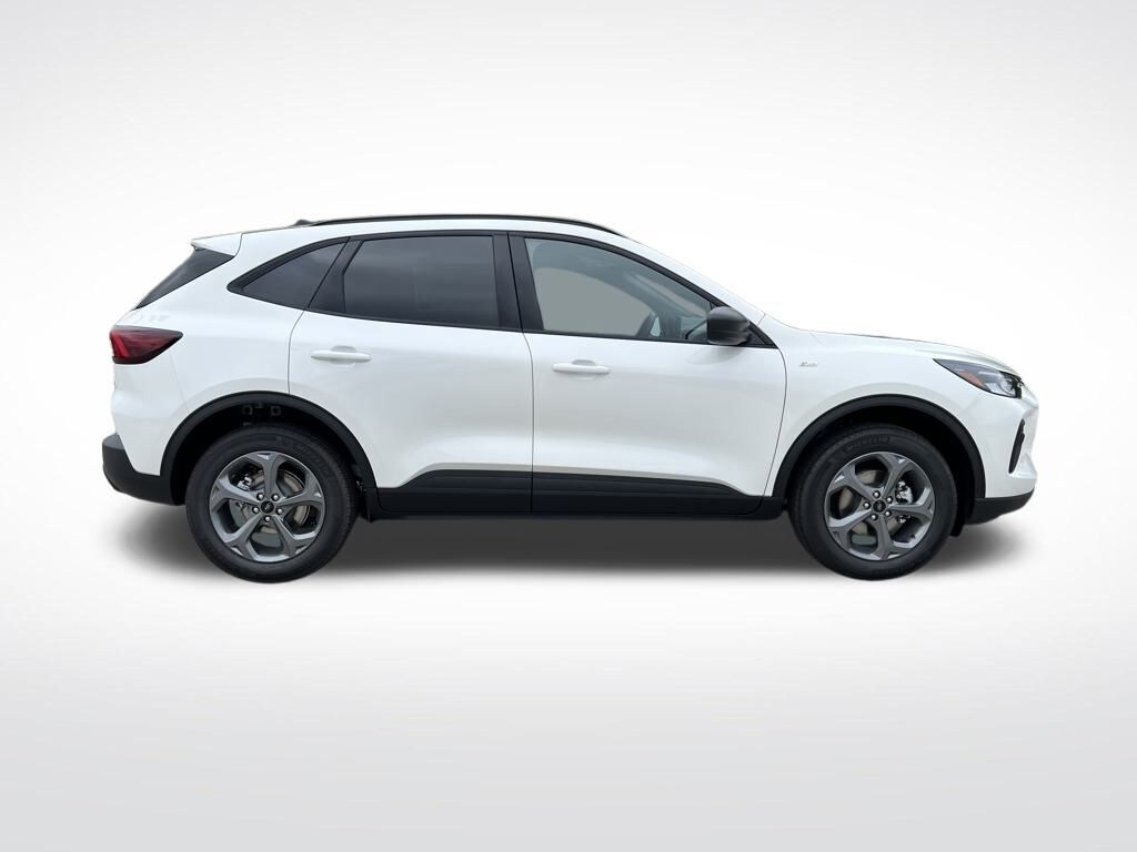 Star White Metallic Tri-Coat 2025 Ford Escape ST-Line AWD 8-Speed Automatic 1.5L EcoBoost ADAPTIVE CRUISE CONTROL, AUTOMATIC HEADLIGHTS, AWD, BACKUP CAMERA, DUAL ZONE CLIMATE, HEATED SEATS, HEATED STEERING WHEEL, NAVIGATION, PARKING SENSORS, REMOTE KEYLESS ENTRY, REMOTE START SYSTEM, Escape ST-Line, 4D Sport Utility, 1.5L EcoBoost, 8-Speed Automatic, AWD, Star White Metallic Tri-Coat, Partial Seats Ebony W Red Stitch Vinyl.